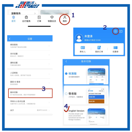 Преземете ја апликацијата 12306, одете во „Јас (на дното) → „Поставки“ → „префрли ја верзијата“ → изберете англиски за да се префрлите на англиската верзија.