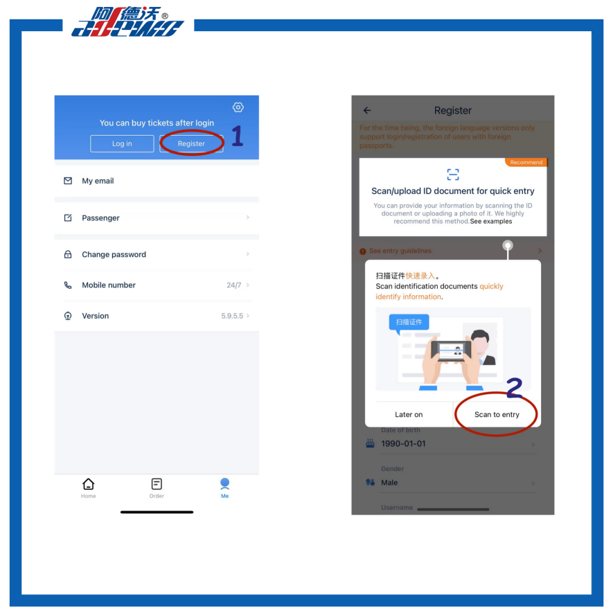 Одете во „Јас“ -> „Регистрирај се“ -> скенирајте го вашиот пасош и пополнете ги вашите лични информации.
