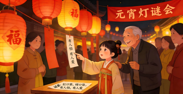 Погодувањето на загатките за фенери започна во династијата Сонг, а тоа е една од најважните и најпопуларните активности на Фестивалот на фенерите. Сопствениците на фенери пишуваат загатки на хартиени белешки и ги залепуваат на шарените лампиони. Луѓето се собираат наоколу за да ги погодат загатките.