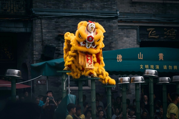 Кинезите традиционално го сметаат лавот за симбол на храброст и сила и веруваат дека неговиот изглед може да го избрка злото и да ги заштити луѓето и нивната стока. Кинезите го обожаваат змејот и го сметаат за симбол на среќа.