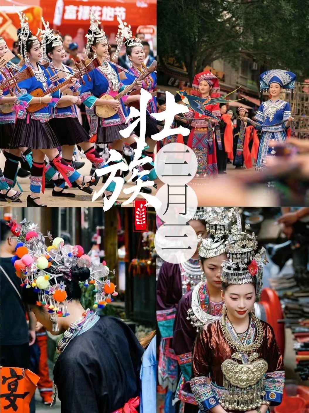 Пеење народни песни, прикажување на традиционални носии, тапање, танцување и гозба на банкет на долга маса - се повеќе и повеќе традиционални активности ќе се одржуваат од третиот ден од третиот лунарен месец до 19 април 2026 година во Гуангкси.